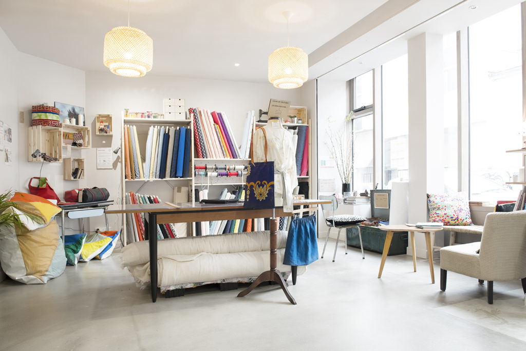 L’espace de l’atelier, quant à lui, est équipé d’un matériel de couture professionnel. Il se prête aux workshops créatifs, ainsi qu’auxréunions intimistes (de 6 à 15 personnes).