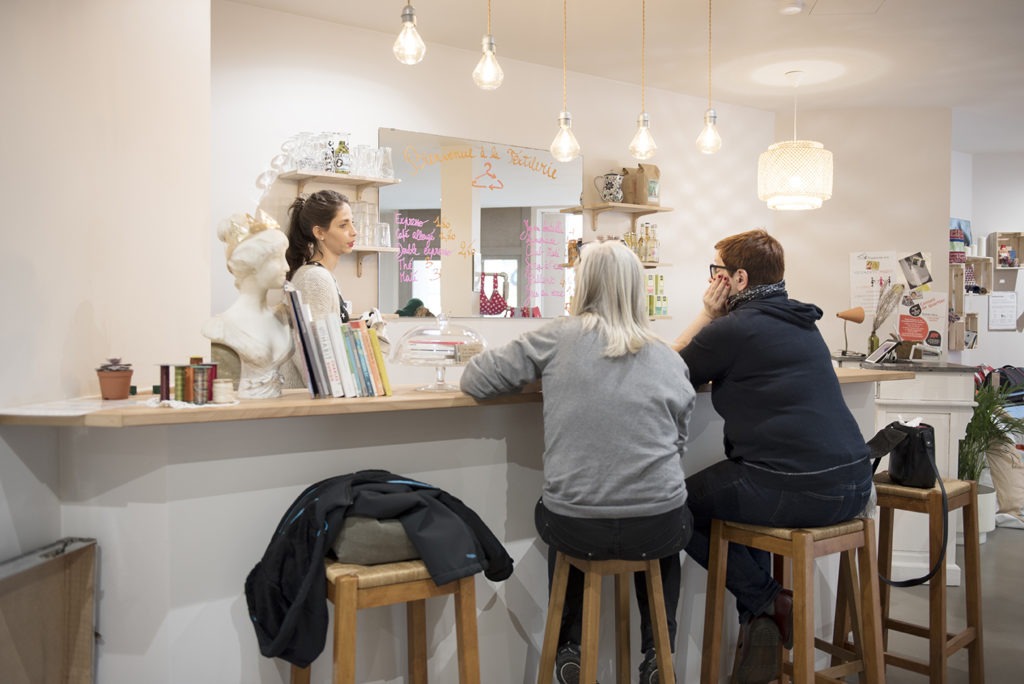 La boutique-café peut accueillir 60 personnes en mode cocktail et 25 personnes assises. Elle dispose d’une grande table ainsi que d’un espace bar. L’atmosphère y est très lumineuse et chaleureuse.