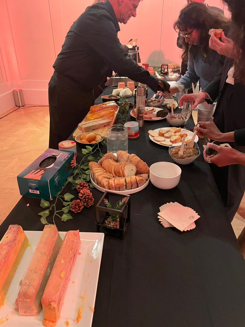 Dès 19h, les invités ont été accueillis avec une coupe de champagne, marquant le début de la soirée dans une atmosphère raffinée. Un buffet composé de 20 pièces cocktail par personne, mêlant mets chauds et froids, a été proposé pour ravir les papilles. En parallèle, des animations culinaires autour du risotto et du foie gras ont offert un spectacle gourmand qui a séduit les convives.