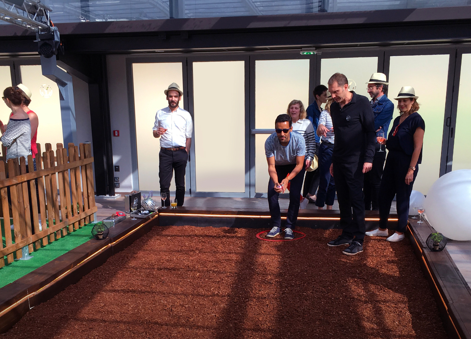Avec cette prestation clé en main, le jeu préféré des Français vient à vous : la préparation et la coordination d’un tournoi ou d’une initiation, la privatisation d’un boulodrome, la présence d’animateurs francophones et anglophones, les boules de qualités signées OBUT et des initiations, challenges, consolantes, … Il est également possible venir installer un ou plusieurs terrains directement dans vos locaux : salles de réunion, hall d’accueil, cour intérieure, terrasse… Les espaces habituellement réservés à d’autres fonctions font le succès d’un événement corporate.