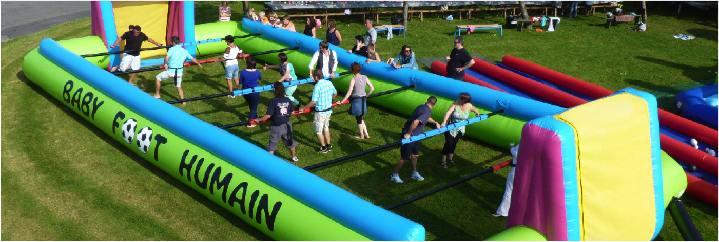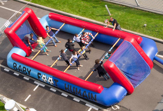 Le Baby Foot humain est une animation gonflable qui se pratique généralement en extérieur.