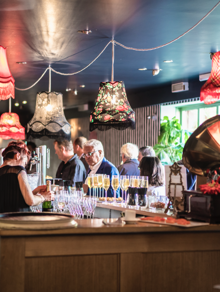 Le Bar à Bulles, c’est 120 m² d’intérieur lumineux complétés par 80 m² de terrasse extérieure. Capacité ? Jusqu’à 70 personnes en configuration assise, 150 en format cocktail. Un cadre parfait pour :