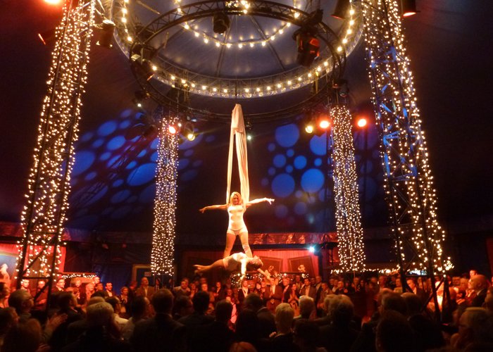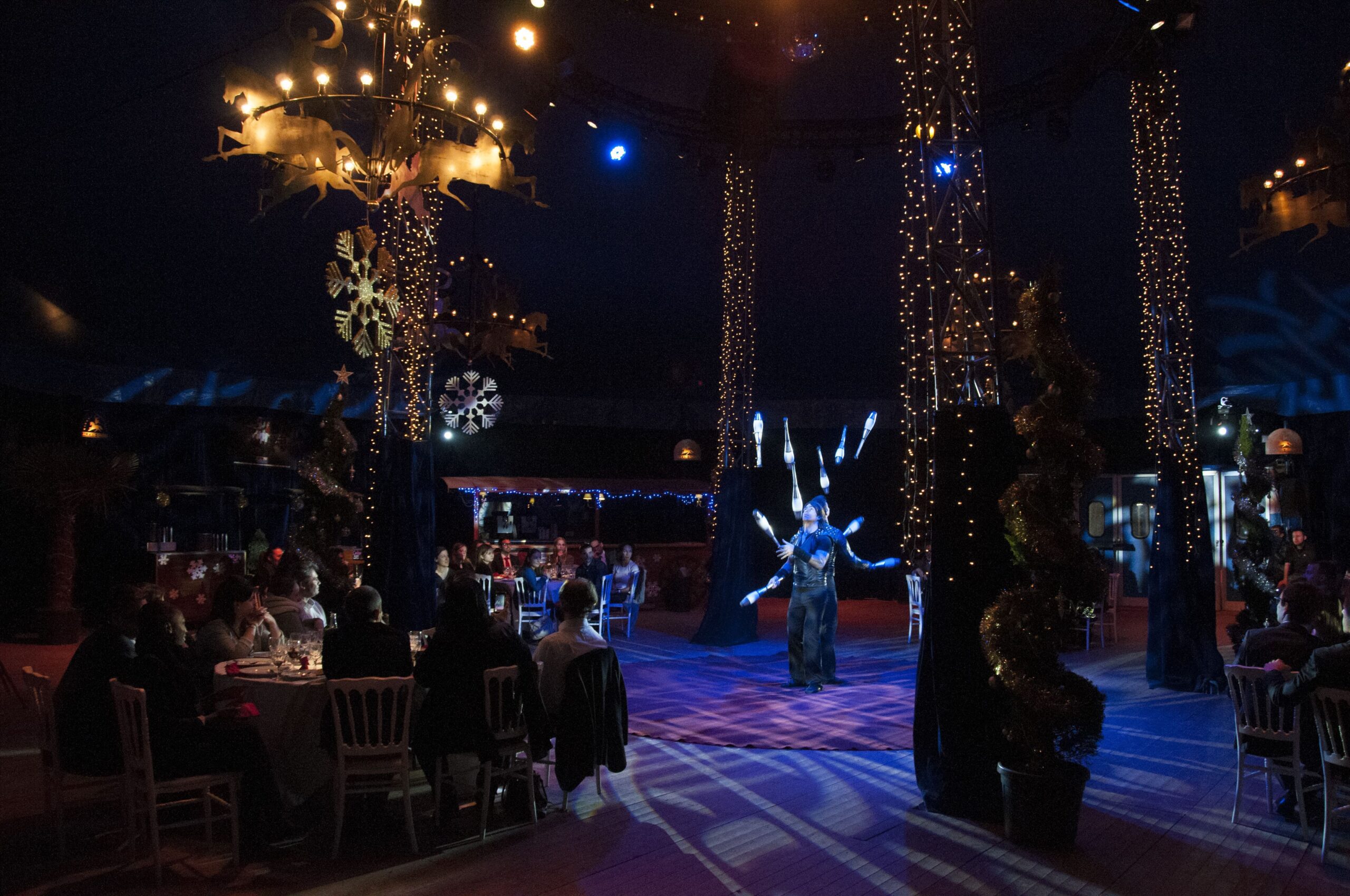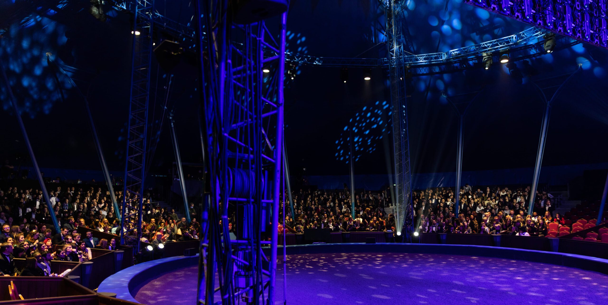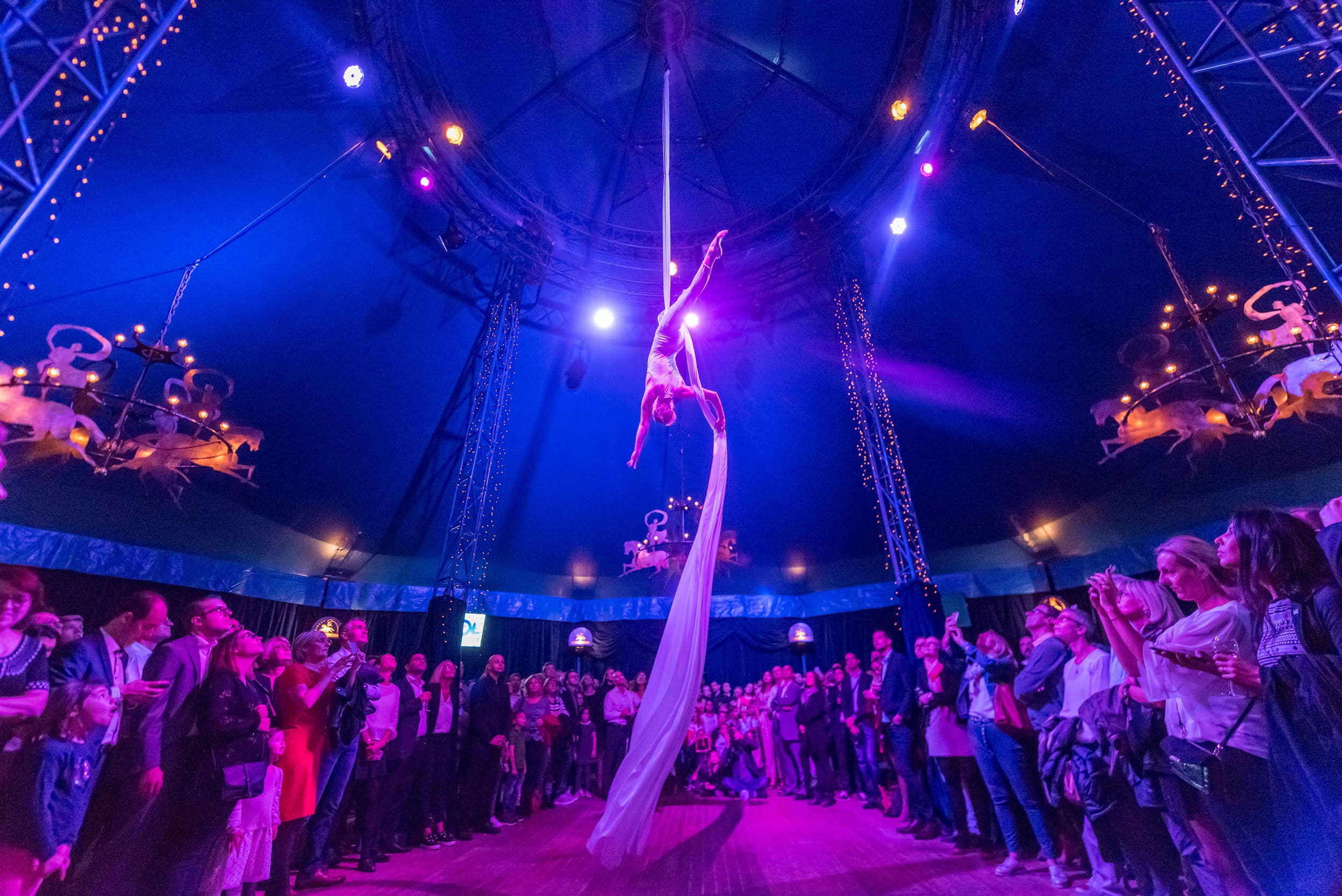 - Le chapiteau d’accueil (400 m²) : ce chapiteau accueille vos cocktails de bienvenue de 150 à 3 000 personnes, vos repas assis jusqu’à 1 000 personnes avant ou après spectacle, et vos soirées de clôture. Les artistes de la famille Gruss y prolongent l’expérience en investissant l’espace pour créer une atmosphère unique.