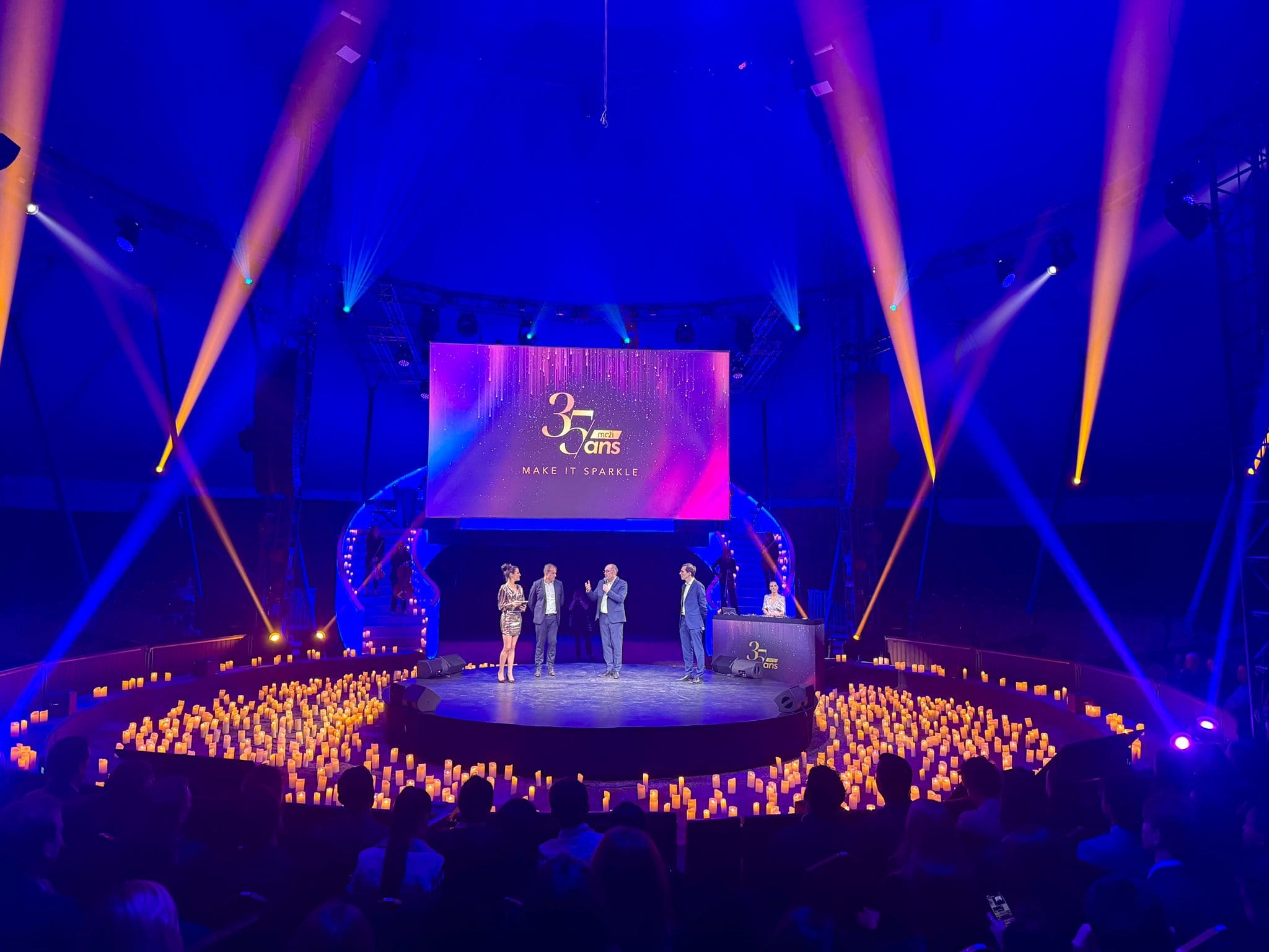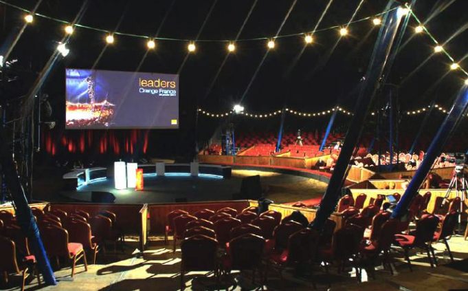 - Le grand chapiteau (1925 m²) : Cet espace accueille le spectacle des Folies Gruss mais se transforme également en espace de conférence et convention d’exception. Depuis la piste centrale, vos prises de parole prennent une dimension spectaculaire et mémorable. Il peut accueillir jusqu’à 3 000 personnes en conférence.