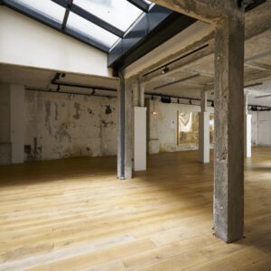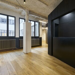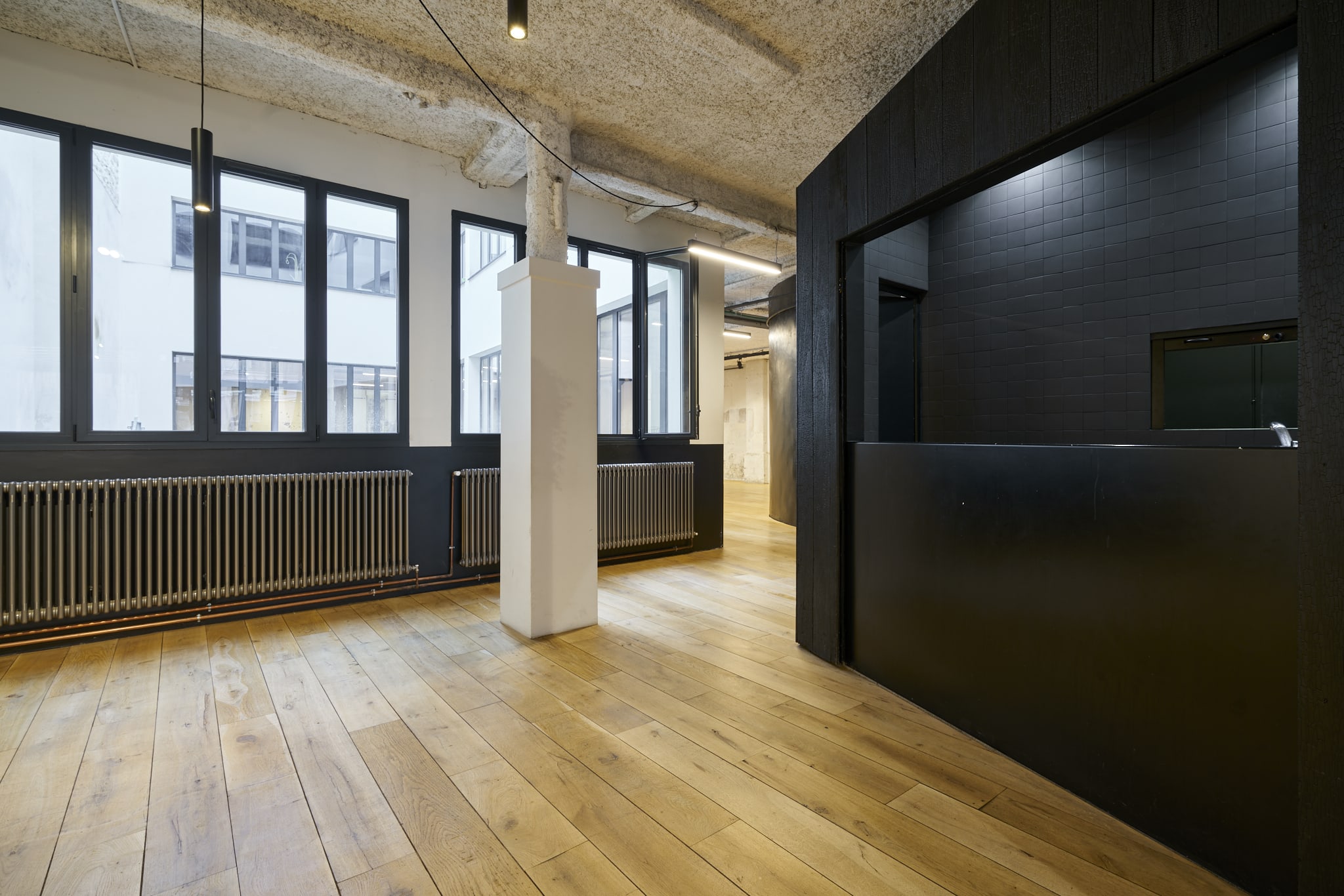 – Parquet en bois massif apportant chaleur et élégance au caractère brut de l’architecture industrielle