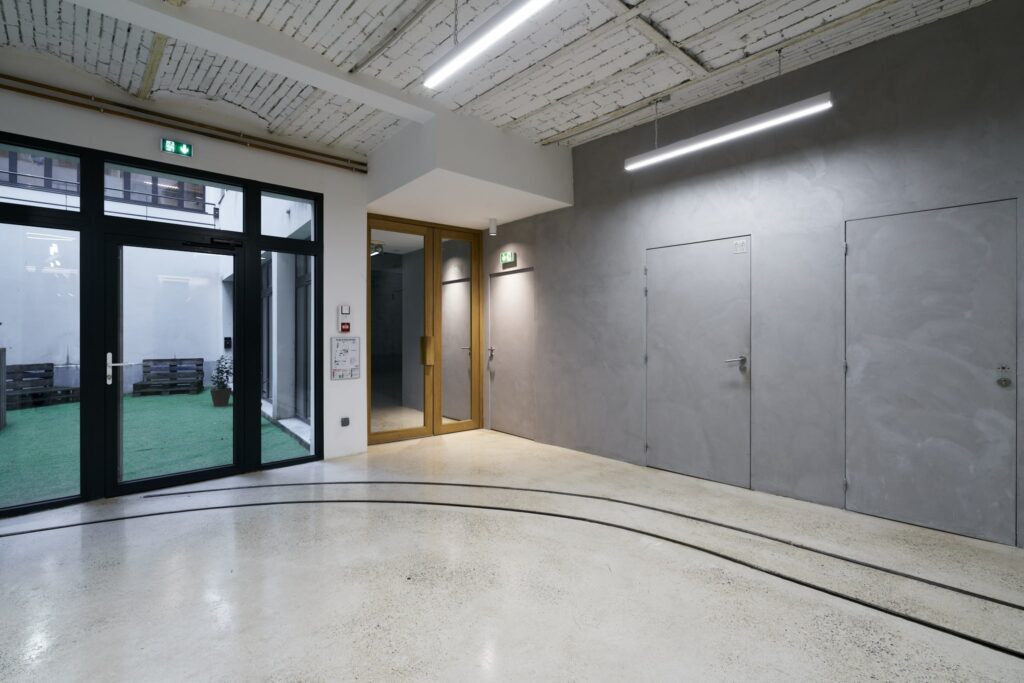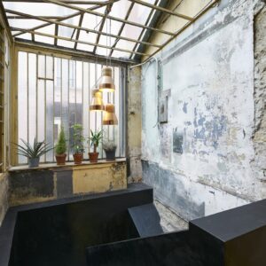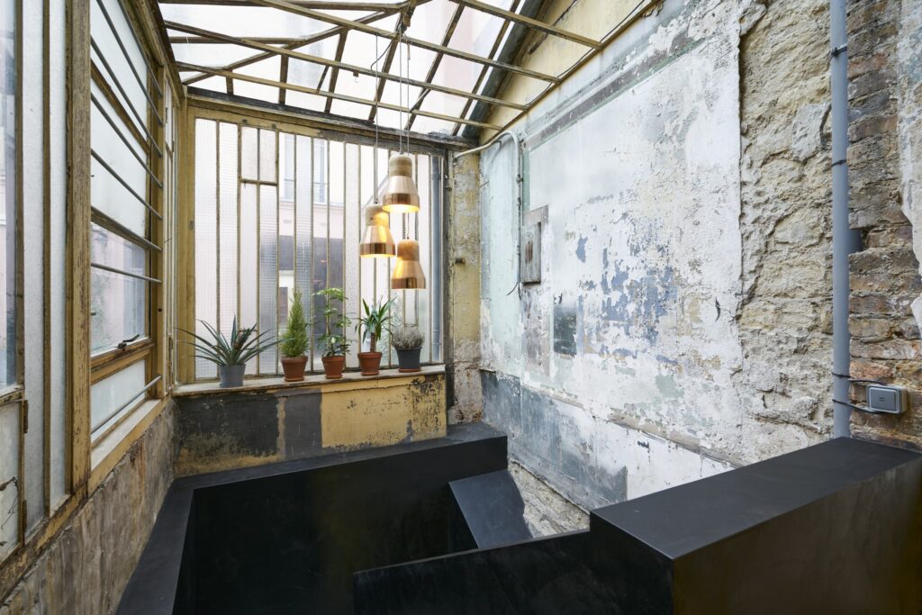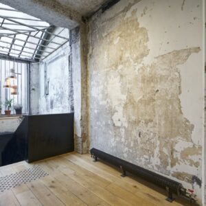 – Murs en béton brut conservant les traces du temps, créant une toile de fond authentique et inspirante