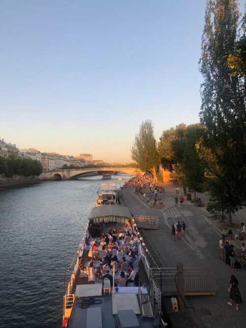 Tout d’abord, les convives ont découvert la péniche, ils ont profité de la vue imprenable qu’offre la Seine.