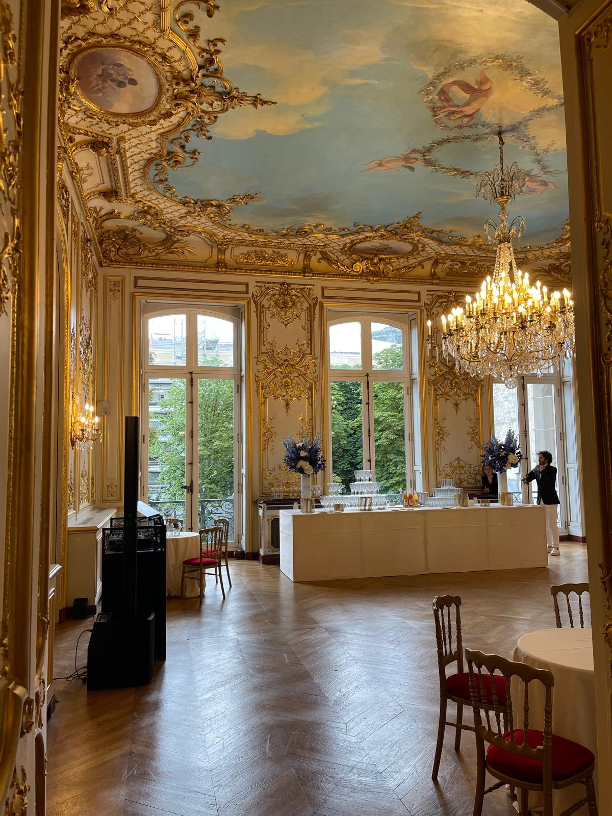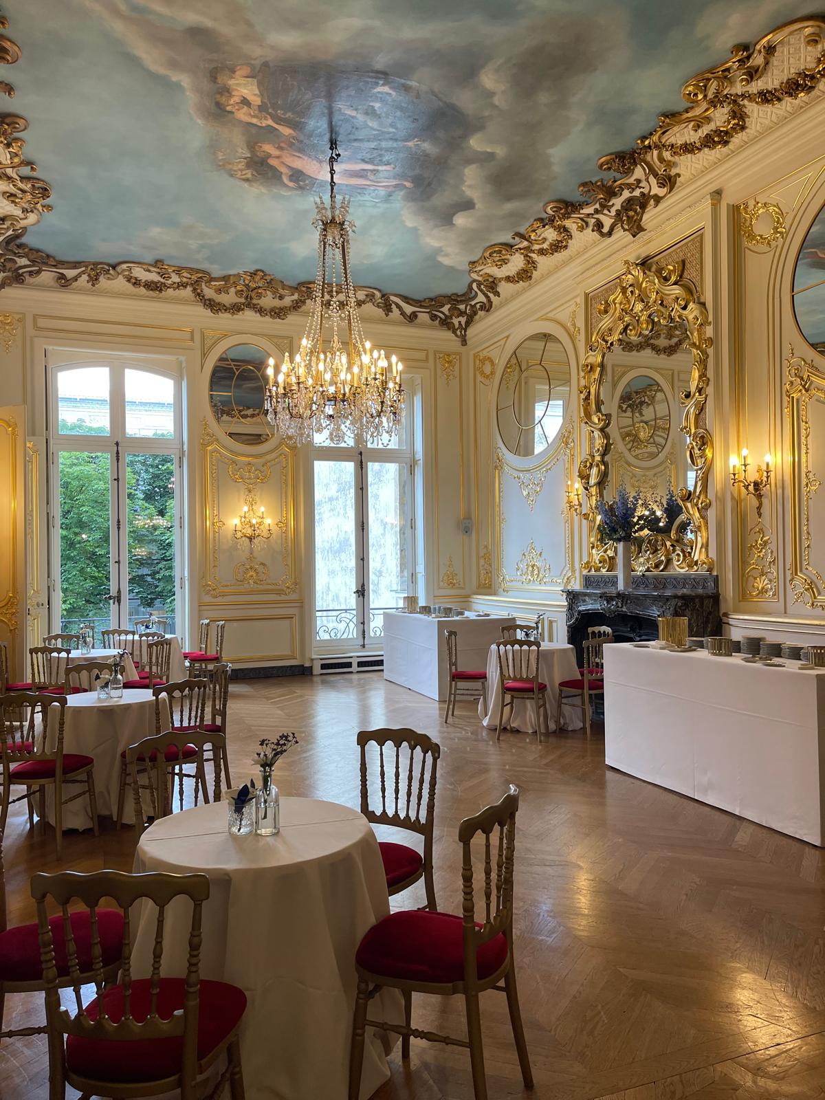 Situé au cœur du triangle d’or parisien, en face du Grand Palais. Ce prestigieux hôtel particulier a réouvert ses portes très récemment après des travaux de rénovation. Sa surface totale de 850m2 est modulable. Il y a également des jardins et une terrasse pour votre évènement soit unique et laisse de merveilleux souvenirs à vos invités !