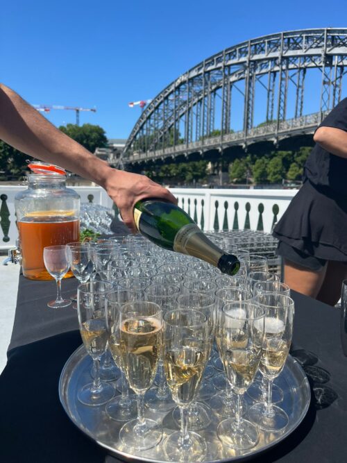 Dès leur arrivée, les invités ont été chaleureusement accueillis avec une coupe de champagne, marquant le début d’une journée festive et raffinée. Le cadre exceptionnel de la Louisiane Belle, avec son charme rétro et sa vue imprenable sur les quais de Paris, a immédiatement plongé les participants dans une ambiance chic et détendue.