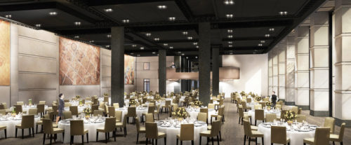 ◊ Le Grand Hall: L’entrée des invités a lieu par le grand hall de 186m². Cet espace est doté d’un large comptoir d’accueil qui favorise un accueil listes ou la remise de badges. De grandes portes vitrées coulissent pour permettre un accès direct sur le parc de Bercy.