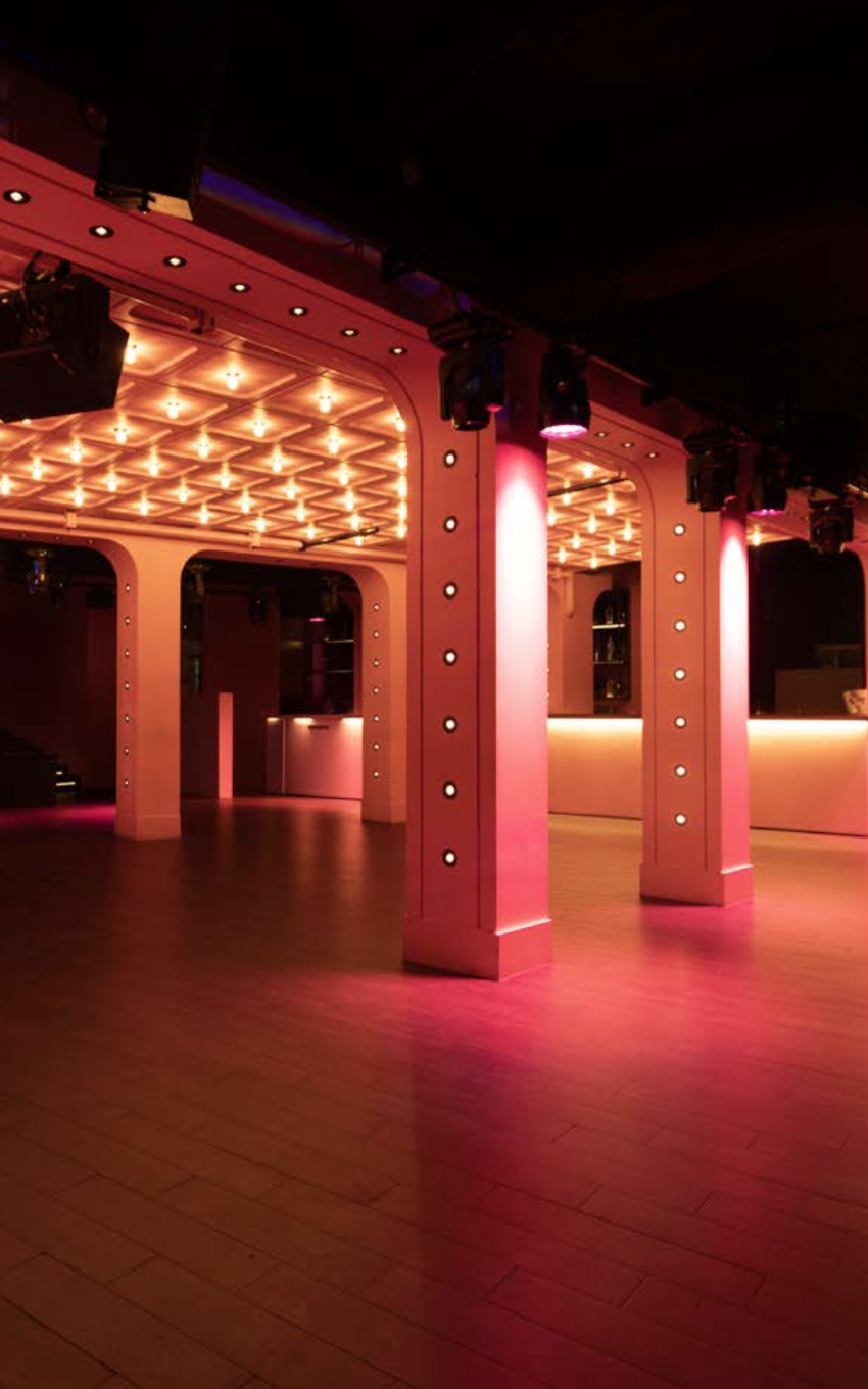 Ce volume spectaculaire de 500 m², avec une ambiance feutrée et tamisée, offre un cadre unique inspiré de la magie des parcs d’attractions pour vos soirées dansantes, cocktails, lancements de produits ou événements d’entreprise.