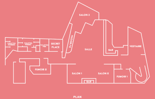 L’espace propose une scène, deux espaces surélevés avec tables et canapés, ainsi que deux bars (un bar principal de 29,75 m² et un petit bar de 65,21 m²). Le club dispose également de vestiaires spacieux (27,86 m²), de deux fumoirs (10,24 m² et 16,17 m²) et de toilettes PMR (7,08 m²), idéal pour les soirées dansantes, cocktails et célébrations mémorables.
