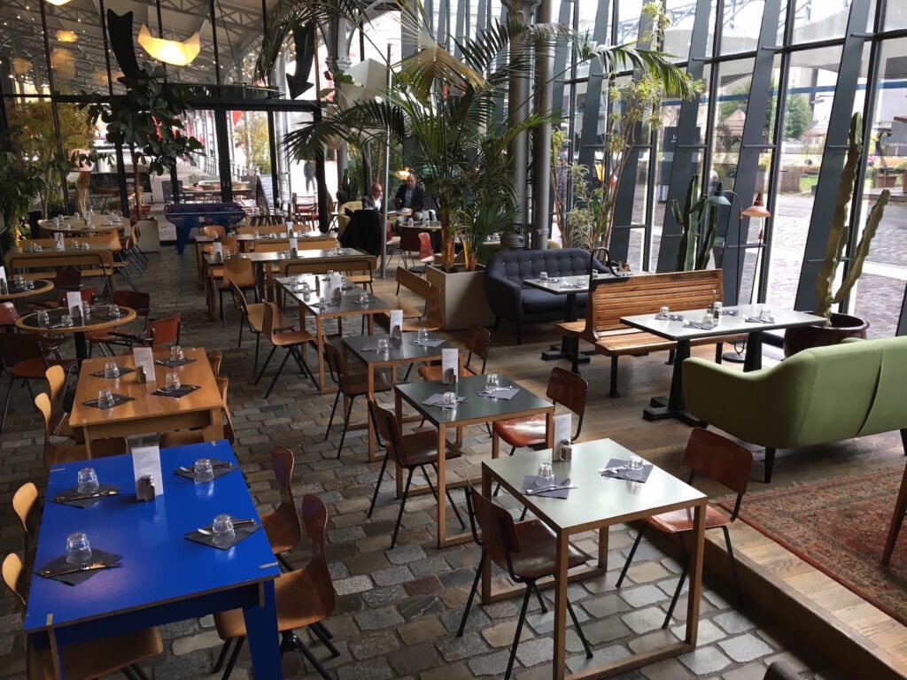 • La Grande Salle (250 m²) : Tout en transparence, ce grand espace lumineux sous verrière est idéal pour l’organisation de vos événements et concerts privés. Son mobilier chiné et sa décoration soignée offrent une atmosphère conviviale et atypique — 100 personnes en assis, 200 en cocktail