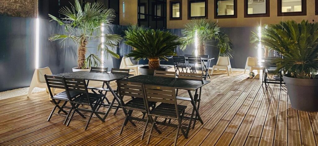 L’un des atouts majeurs du 58 MEETING PLACE est son immense terrasse arborée de 200 m². Cet espace extérieur de plain-pied est parfait pour se ressourcer entre deux sessions de travail. En effet, ce lieu vous permet aussi de profiter d’un cadre verdoyant en plein cœur de la ville. Une tente de réception chauffée, équipée de tables et de chaises, permet également d’accueillir vos invités à tout moment de l’année, dans des conditions optimales.