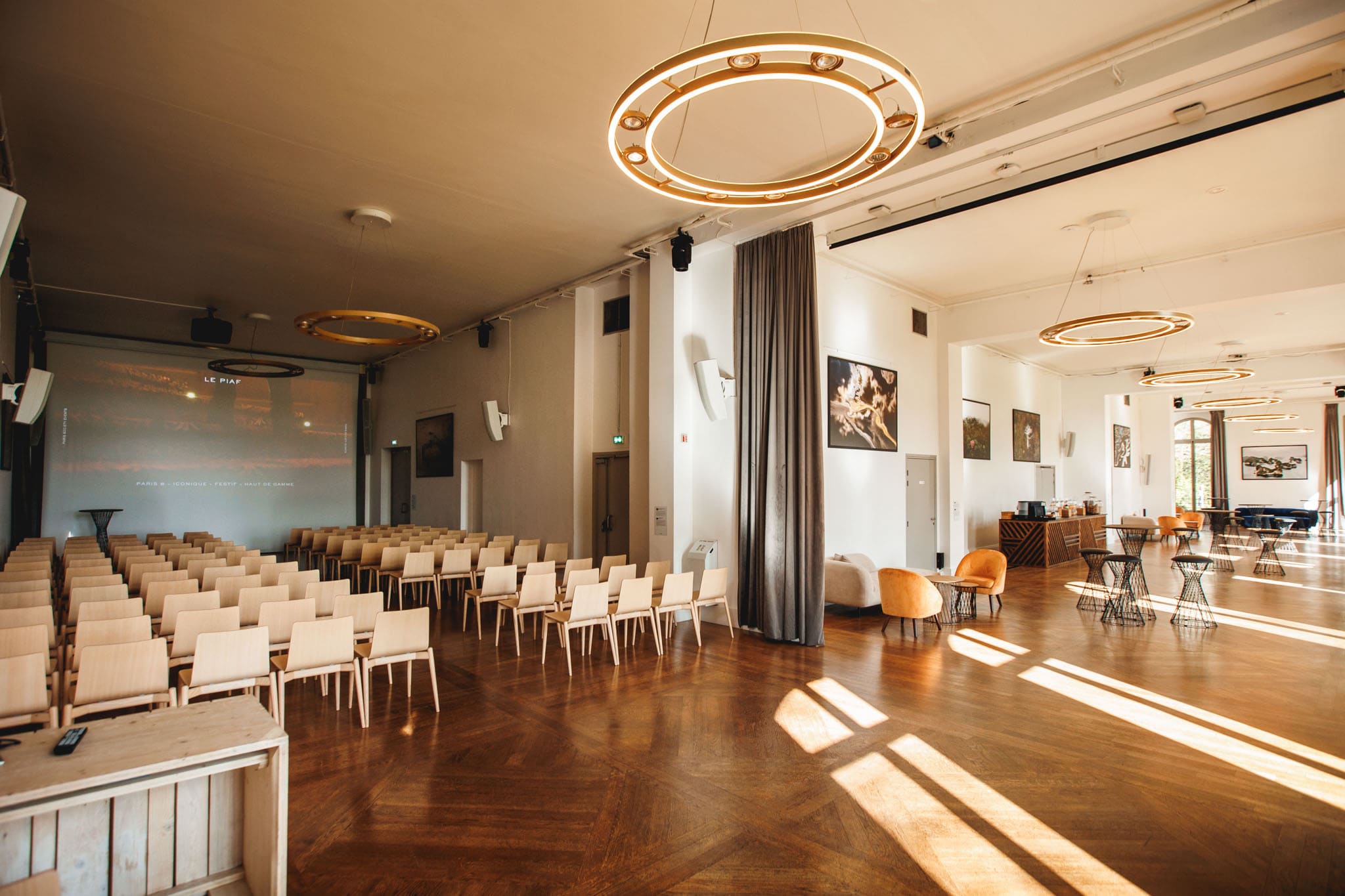- L’aile de Suresnes (132 m²) : Dans le prolongement de la grande salle, l’Aile de Suresnes s’adapte à tous vos formats avec une modularité totale. Ainsi, vous pouvez accueillir jusqu’à 180 personnes en cocktail, 150 personnes en théâtre ou encore 100 personnes en repas assis.