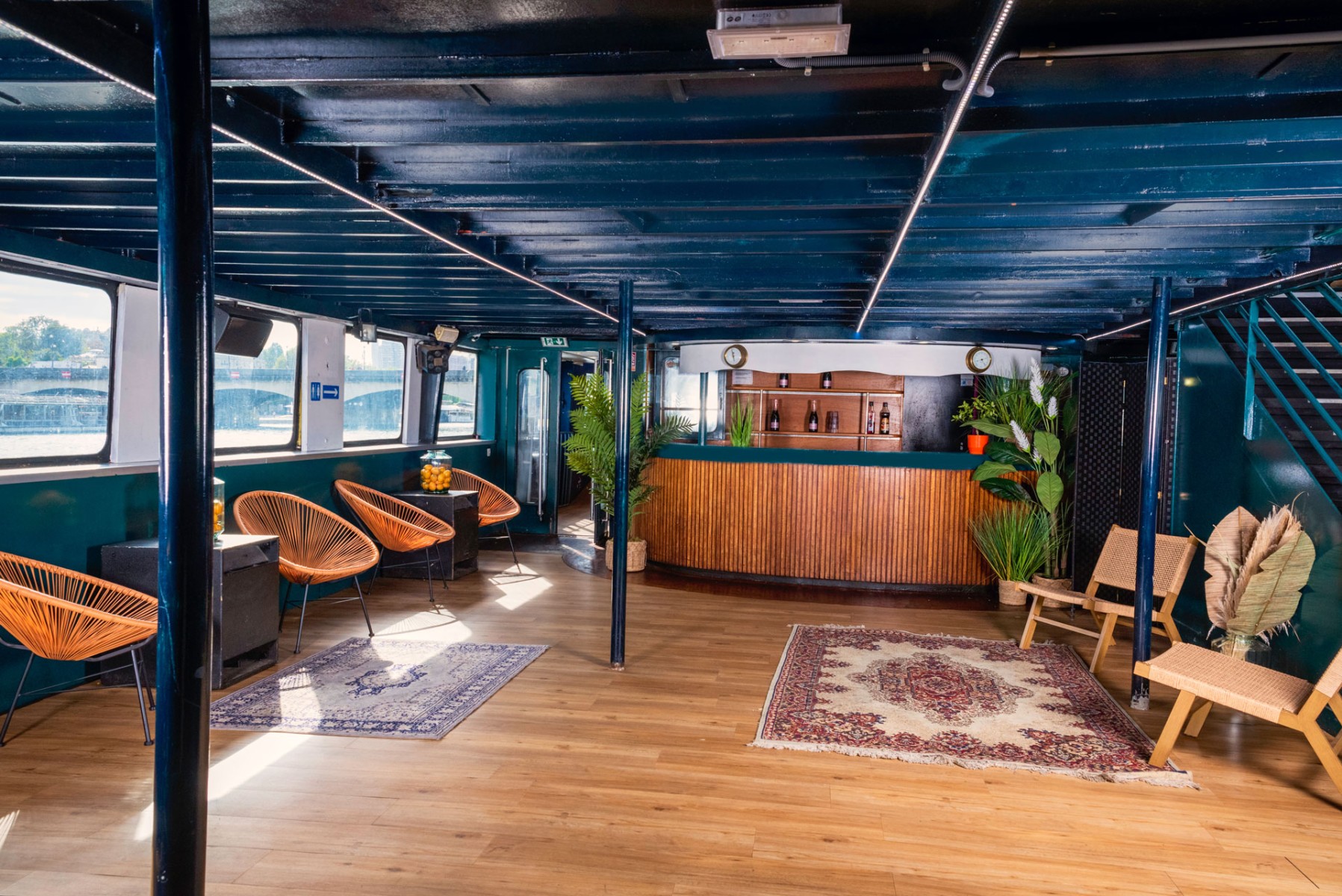 Le River’s King est un espace événementiel d’exception ouvert à la privatisation, situé dans le 12e arrondissement de Paris. Véritable guinguette flottante de 450 m² aux accents contemporains, le River’s King figure parmi les plus grandes salles de réception navigantes du paysage parisien. À quai ou au fil de l’eau, il accueille vos événements jusqu’à 700 personnes dans un cadre original et festif, à contre-courant du paysage fluvial traditionnel.