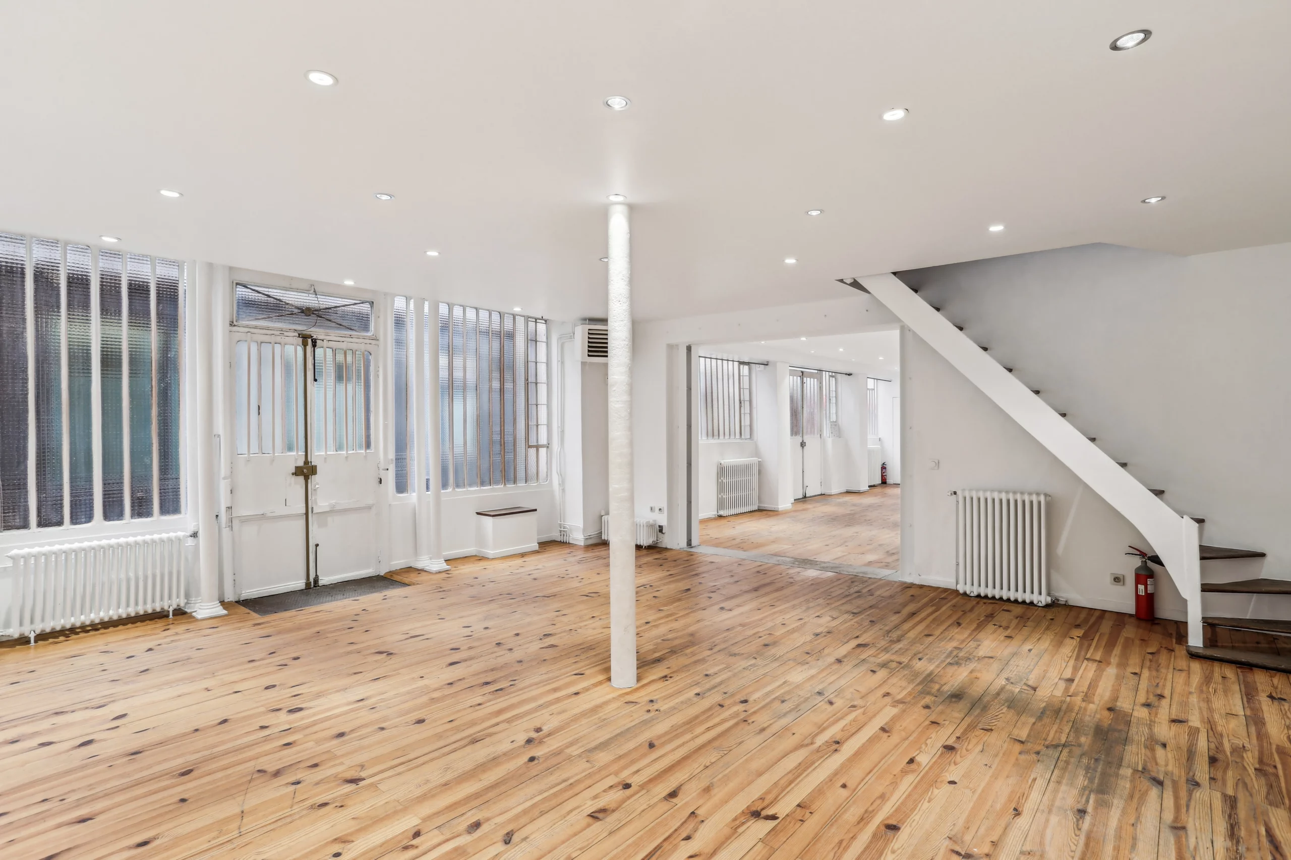 Le 1 er étage se compose d’un espace de 85 m2 et d’un appartement de 46 m2.