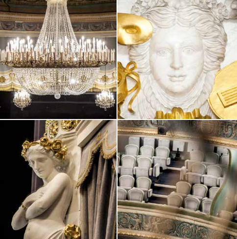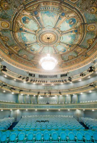 Le plafond de Charles Séchan, les cariatides des loges d’avant-scène aux fronts ceints de couronne, le velours bleu des fauteuils et le beau lustre lui confèrent un charme unique.