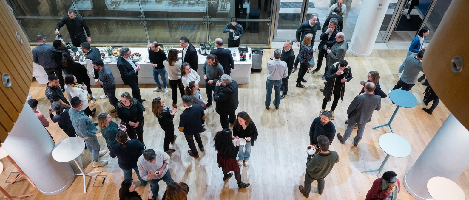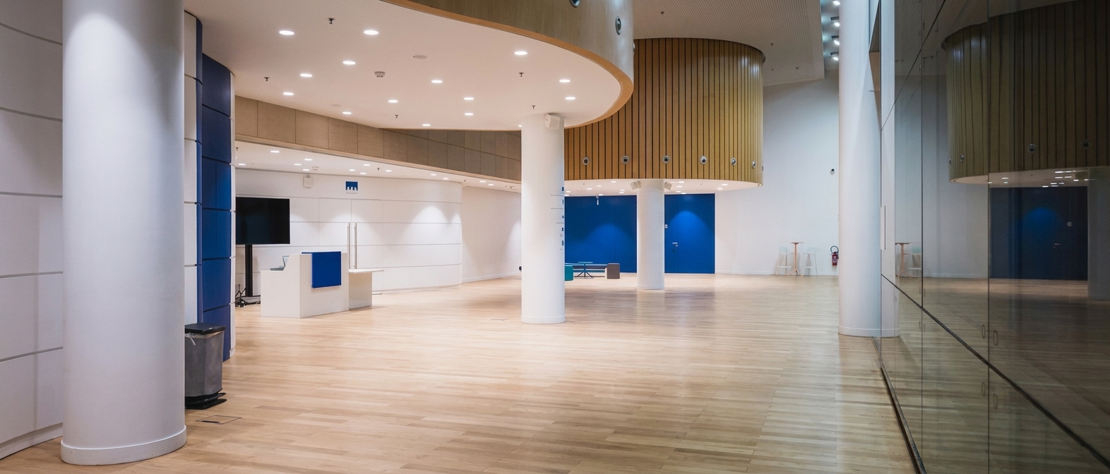 • Le Hall de réception (250 m²) : Un grand espace avec office traiteur, idéal pour vos pauses, cocktails ou expositions — jusqu’à 260 personnes en cocktail