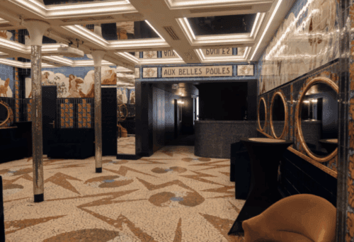 Nichée au 32 rue Blondel, à deux pas de Strasbourg Saint-Denis, Aux Belles Poules est bien plus qu’une salle de réception. Véritable vestige du Paris d’antan, ce lieu emblématique séduit par son architecture art déco et ses mosaïques d’époque préservées avec soin.