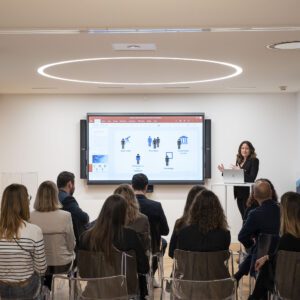 - Des salles de réunion intelligentes, équipées de visioconférence, d’écrans Full HD et d’une domotique avancée.