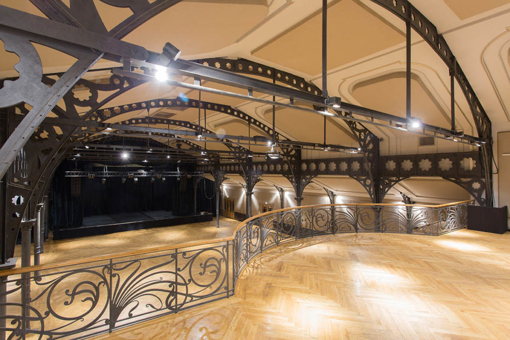 Dans la pure tradition des salles de bal du XIX siècle, l’Élysée Montmartre revêt un parquet en chêne luisant aux motifs travaillés. La structure métallique d’inspiration Eiffel et ses colonnes régulières s’accordent harmonieusement avec le sol ciré.