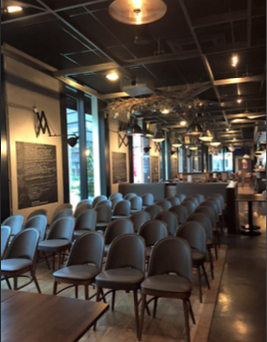 C’est dans un restaurant convivial et chaleureux que vous pourrez dés lors inviter vos convives. Une belle et authentique ambiance industrielle, avec poutres métalliques, que l’on doit aux anciennes usines Renault! Niveau décoration, il n’y a rien à dire si ce n’est que c’est le parfait mariage entre ancien et moderne: un lieu parfaitement agencé et décorer!