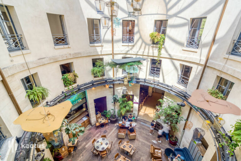 - L’Atrium (170 m² + 30 m² extérieur) : Espace lumineux ouvrant sur deux péristyles, avec une verrière à 16 m de haut. Idéal pour les cocktails, conférences ou tournages — 85 personnes en plénière, 200 en cocktail