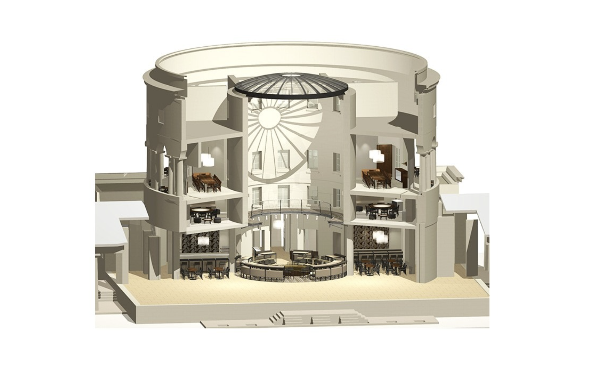 - La Rotonde : L’espace central emblématique du lieu, au cœur du monument historique, pour des événements d’envergure