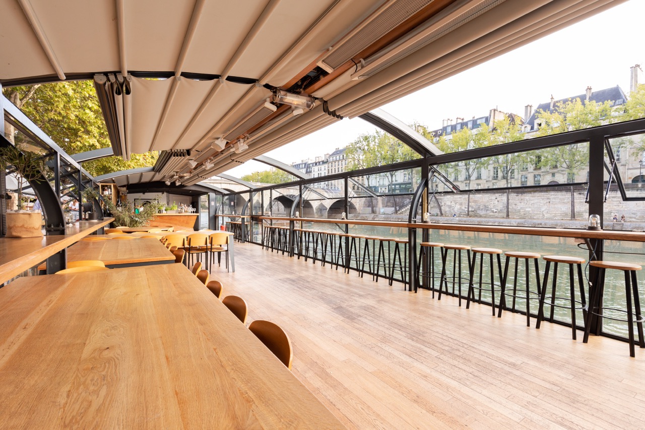 Une fois installé sur les canapés de la terrasse ou sur le bateau, on profite en toute simplicité d’une carte de la mer remasterisée, d’une programmation électro, de cocktails colorés et d’une belle sélection de vin français.
