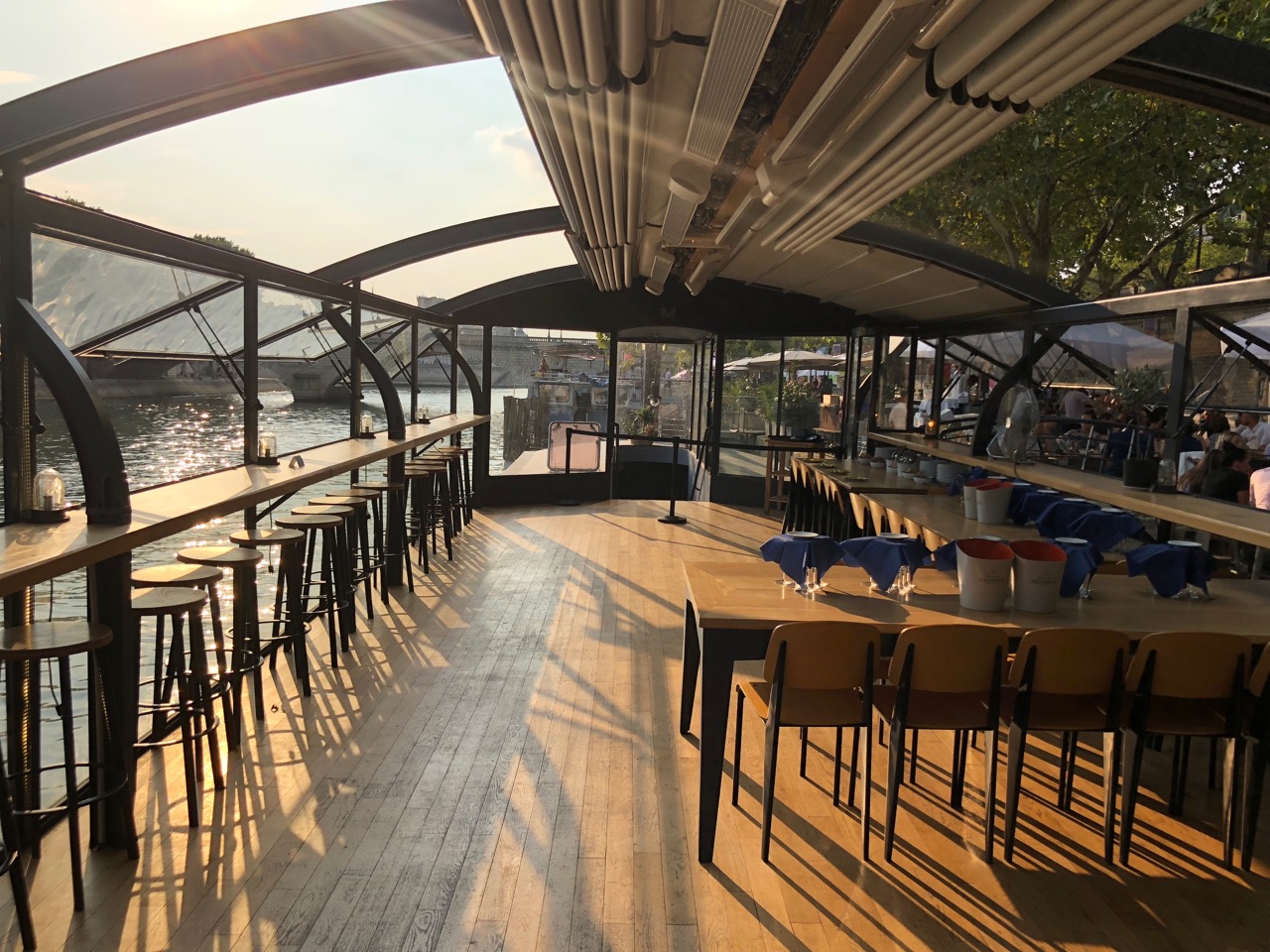 Les Maquereaux Rive Droite propose une offre fraîche, iodée et cela les yeux rivés sur la Seine, en face de l’Île Saint-Louis.