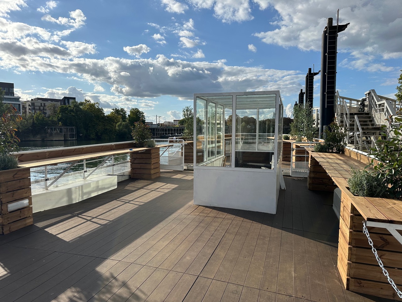 L’espace extérieur a été considérablement agrandi afin d’accueillir encore plus de convives dans un cadre convivial et élégant. Désormais, vos cocktails, afterworks et réceptions profiteront d’un panorama unique sur la Seine, avec un confort optimal et une circulation fluide entre l’intérieur et l’extérieur.