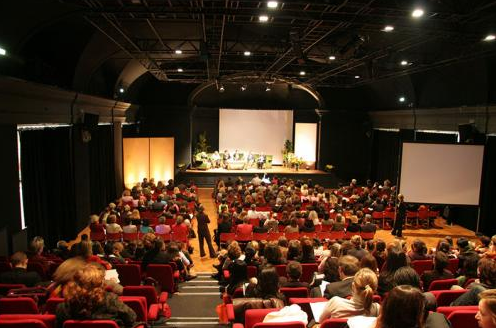 ◊ Espace Adenauer: Cet amphithéâtre est pourvu de 283 places, d’un plateau central extensible de 220 places supplémentaires et de 2 galeries modulables.