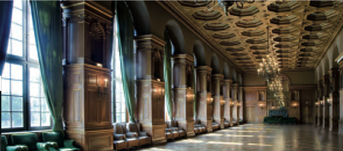 ◊ Salon David-Weill + Salon Gulbenkian: Ces salon de 83m2 avec vue sur la cour d’honneur peuvent chacun contenir jusqu’à 83 personnes.
