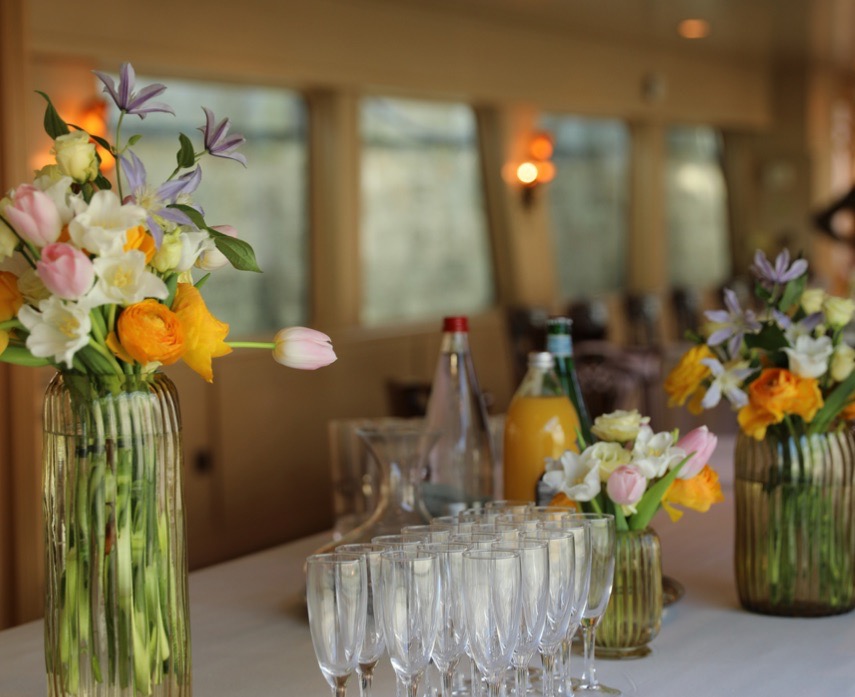 Cette péniche peut accueillir jusqu’à 50 personnes en cocktail et 40 personnes en dîner assis.