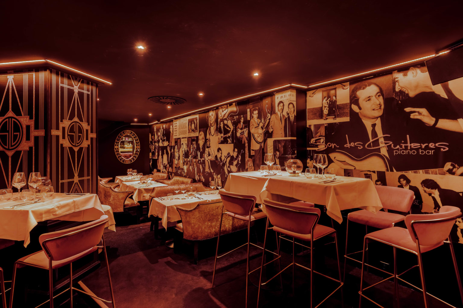 Privatisation Club au son des guitares. Au son des Guitares est un lieu à ne pas manquer où l’on dîne, on chante, on rit et on danse jusqu’au bout de la nuit avec des live musics et des DJ’s. Présent depuis 60 ans, après Marseille, Aix, Nice, Cannes et Bastia; le restaurant situé près de Saint-Germain-des-Prés est un lieu incontournable des noctambules. Un établissement de nuit où on se sent comme chez soi.