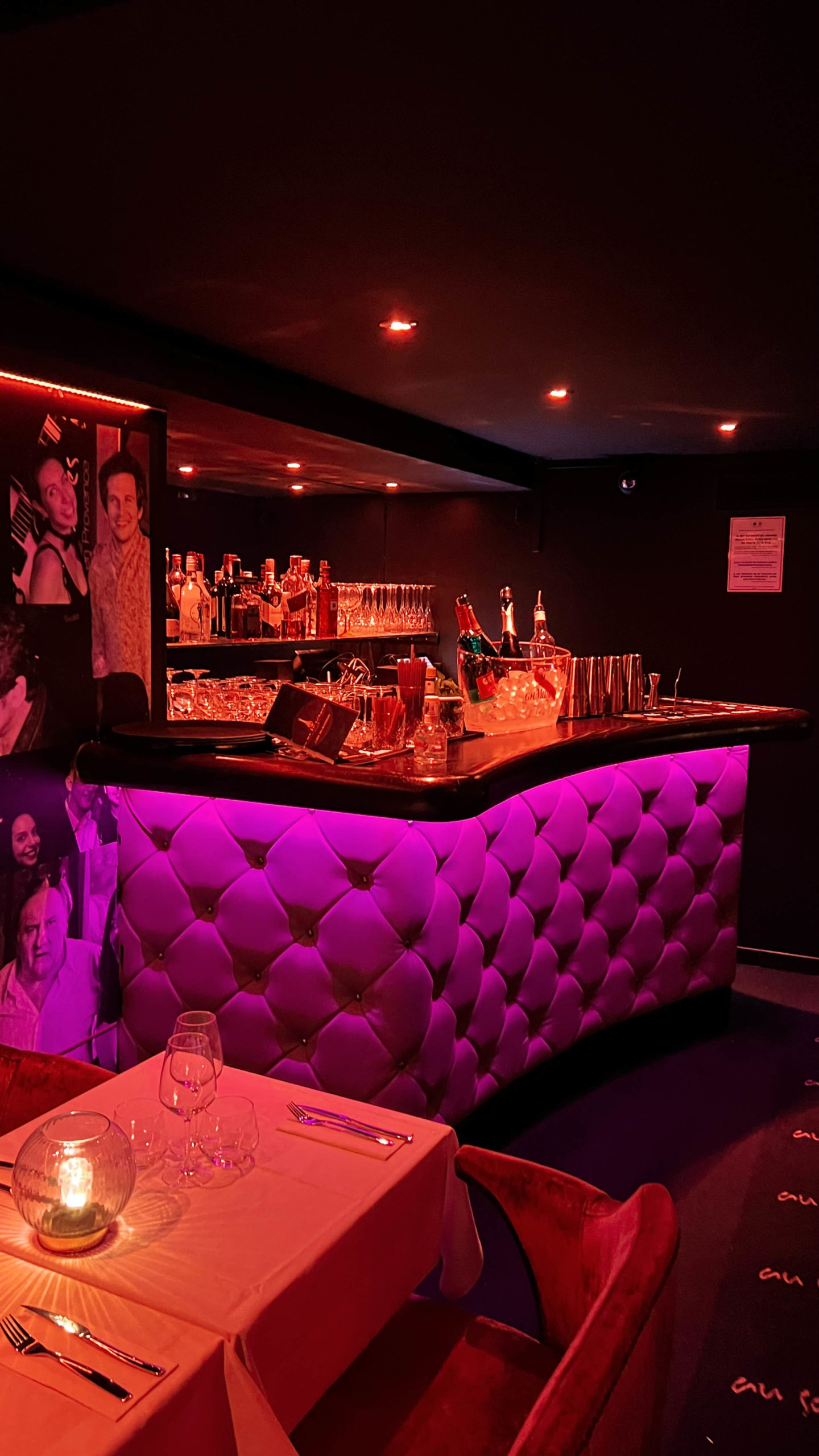 Profitez d’un décor feutré entre les clichés flanqués au mur, les banquettes en velours et le bar matelassé ainsi que d’une ambiance festive avec des chants corses accompagnés de guitares hors pair.
