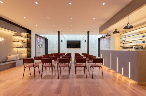 Cet espace peut accueillir 30 personnes en U, 42 personne en Îlots, 70 personnes en théâtre et 90 personnes en cocktail.