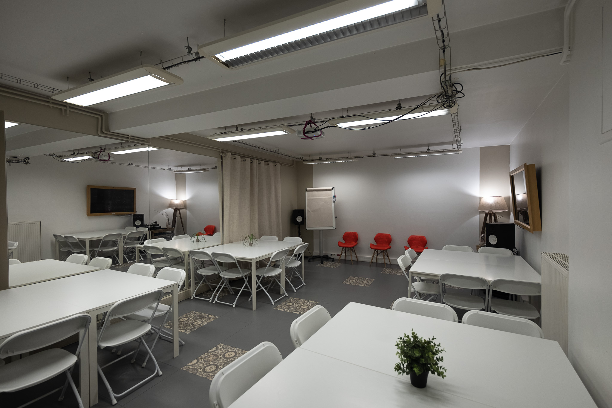 Privatisation Espace Millepied. Découvrez cet espace événementiel situé dans le 17 ème arrondissement de Paris. Cet espace est une salle de 36m2 avec sono, écran et vidéo projecteur.