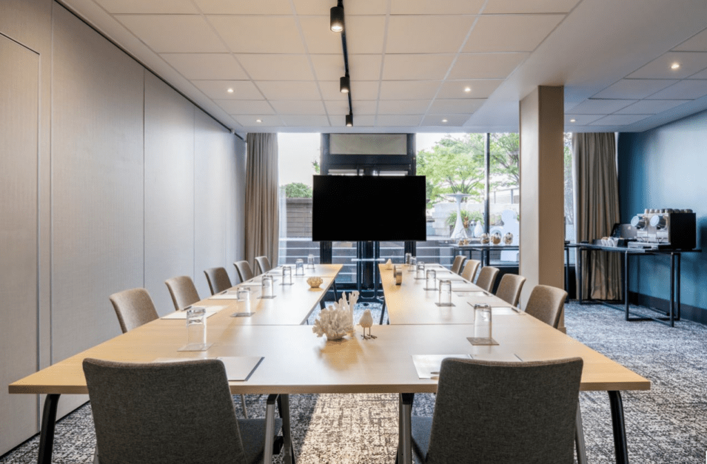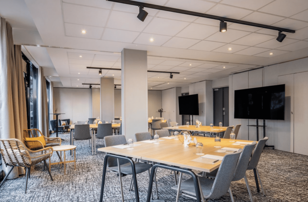 - Espace flexible : L’espace de réunion de notre hôtel permet une variété de configurations (conférence, amphithéâtre, en U…) et peut accueillir jusqu’à 80 personnes.