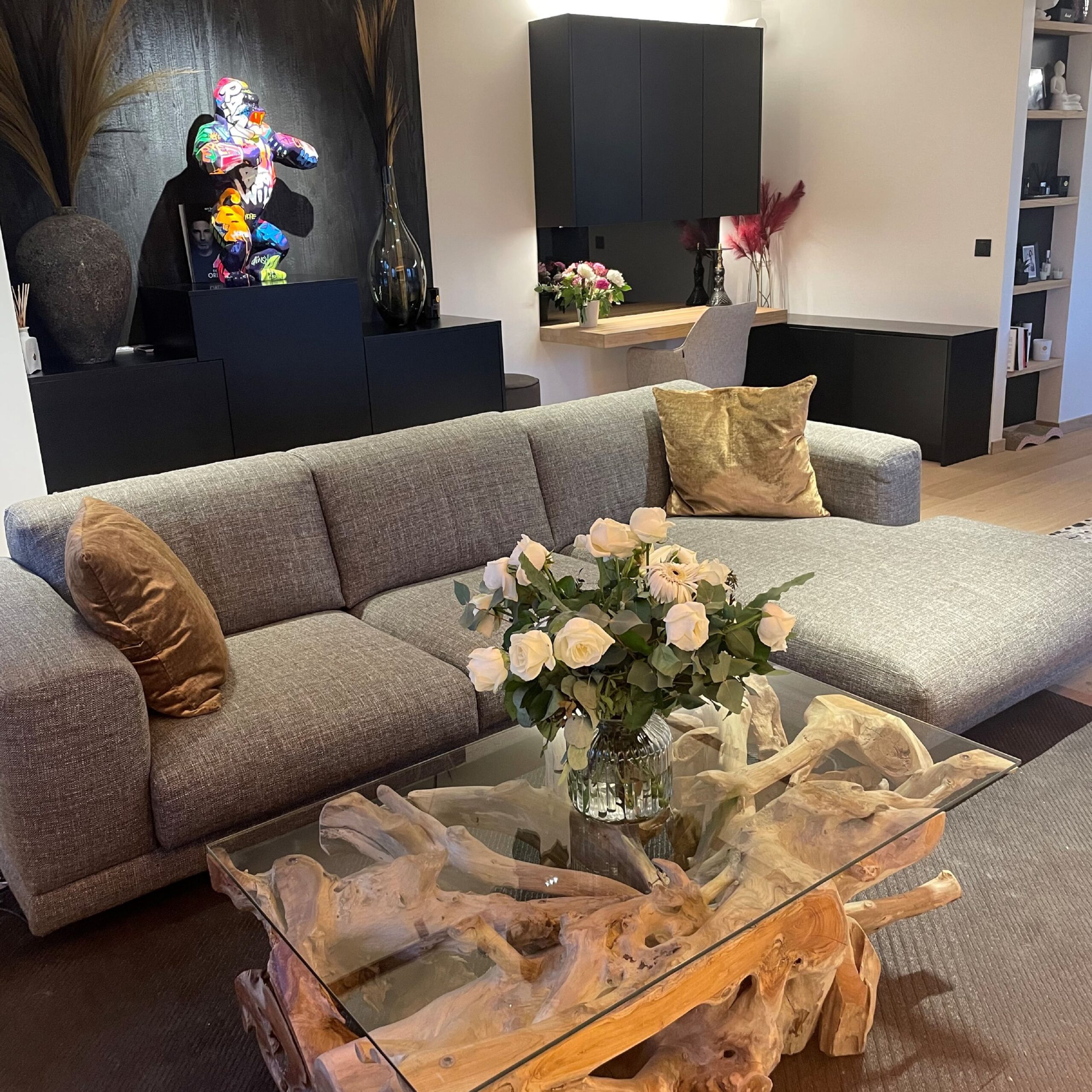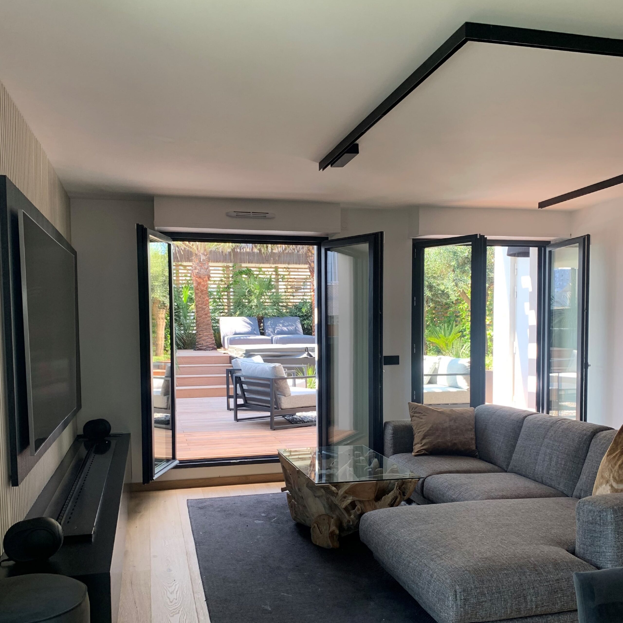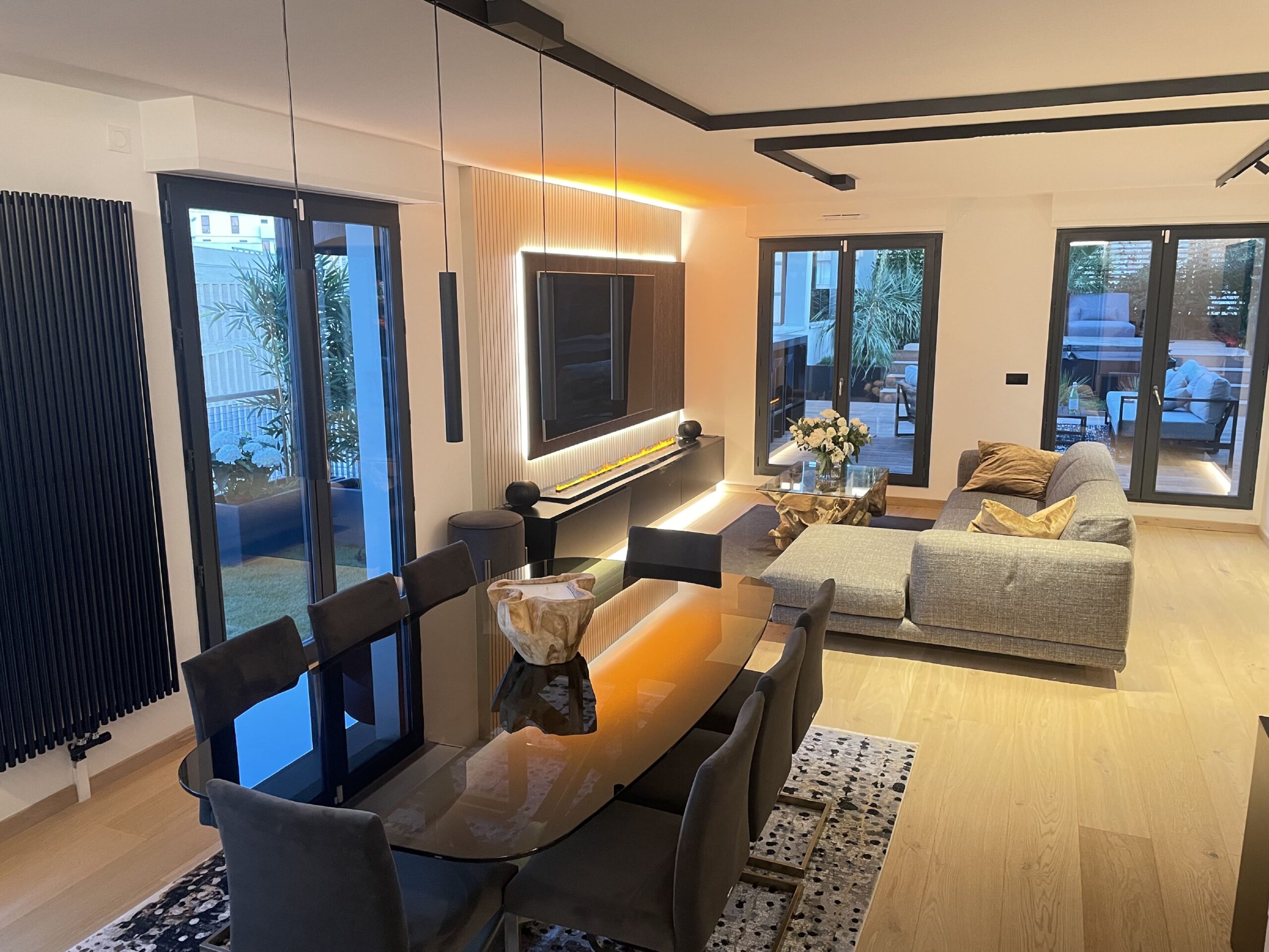 L’Oasis Urbaine : votre espace rooftop au cour de la Défense. A l’intérieur, l’espace est décoré avec élégance et épure pour créer une ambiance chaleureuse et confortable. Le séjour s’ouvre sur la terrasse en bois exotique, créant ainsi une véritable oasis urbaine.