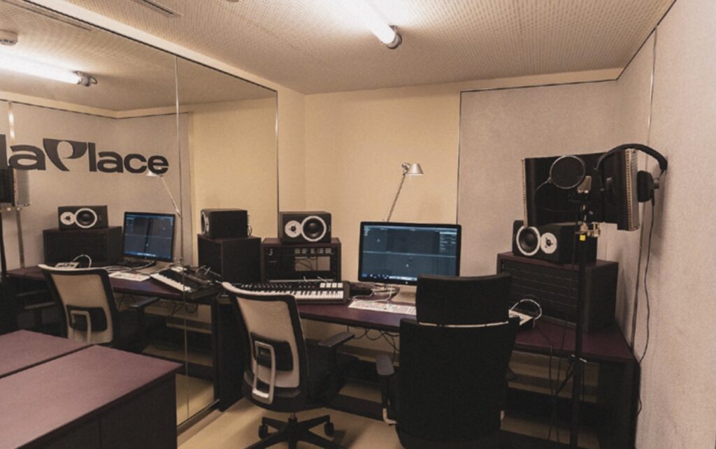 La Place dispose d’un grand studio de répétition et d’enregistrement et d’une cabine de prise et de mix professionnelle.