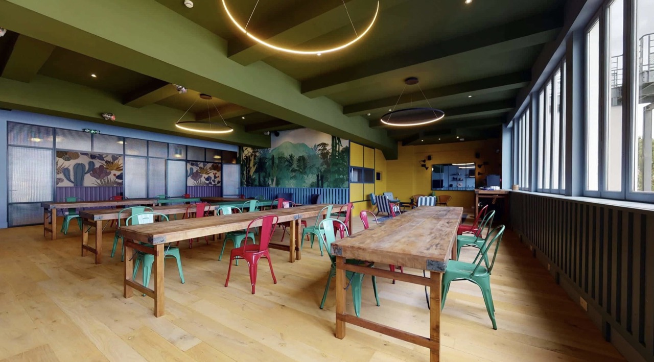 LA CANTINE : Cet espace est un espace de restauration idéal pour un repas assis, cocktails, buffets quand le Karé est privatisé en intégralité. Enfin, ce lieu peut aussi devenir un office tout équipé pour une journée de travail jusqu’à 50 personnes. D’une surface de 170m2, cet espace peut accueillir 72 personnes en repas assis et 140 personnes en cocktail.