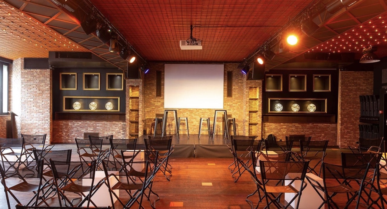 LE STUDIO : Cet espace de 200m2, est un espace plénière, incluant la technique intégrale. C’est une salle insonorisée, avec possibilité d’organiser des soirées dansantes. Cet espace peut accueillir jusqu’à 200 personnes en théâtre.