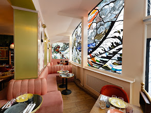 Le Cabaret Restaurant se distingue avant tout par ses vitraux exceptionnels inspirés du peintre japonais Hokusai, classés au patrimoine culturel français. La salle cabaret, avec sa rotonde parquetée et sa piste centrale, complète cette atmosphère hors du temps dans l’esprit des Années Folles.