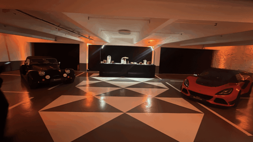 Le lieu propose deux plateaux modulables sur 1 500 m², alliant modernité et caractère industriel. Le rez-de-chaussée comprend un espace de réception raffiné, un salon avec bar, et une grande salle pouvant être aménagée pour des dîners, des expositions ou des lancements de produits. À l’étage inférieur, un immense parking offre une toile de fond brute et polyvalente, idéale pour des installations artistiques ou des événements d’envergure.