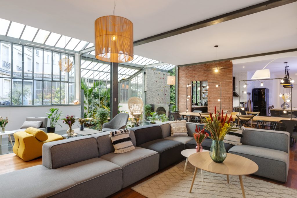 En effet, vous y trouverez le grand salon design et moderne de 100m2 agencé pour que vous vous sentiez dans un environnement cosy et chaleureux. Le salon donne sur un jardin d’hiver exotique surplombé par une verrière et sur une cuisine américaine totalement équipée pour accueillir chefs et traiteurs dans les meilleures conditions