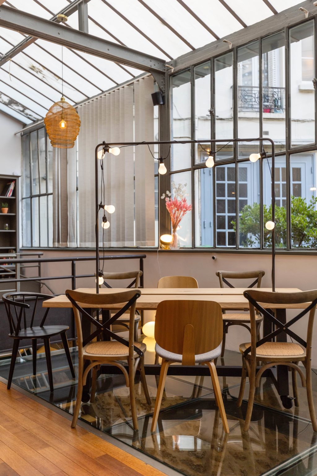 Ce duplex sous verrière peut accueillir 150 personnes en cocktail, 80 personnes en format assis et 40 personnes en dîner assis autour d’une même table.