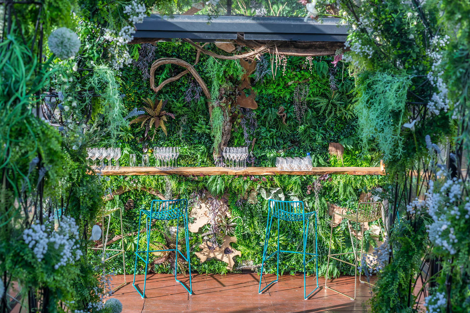 Réalisé par le célèbre fleuriste Georges Sebag, tous les éléments composant les décorations sont naturels ou organiques.