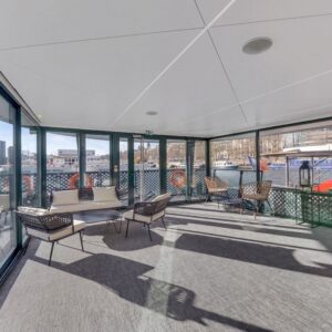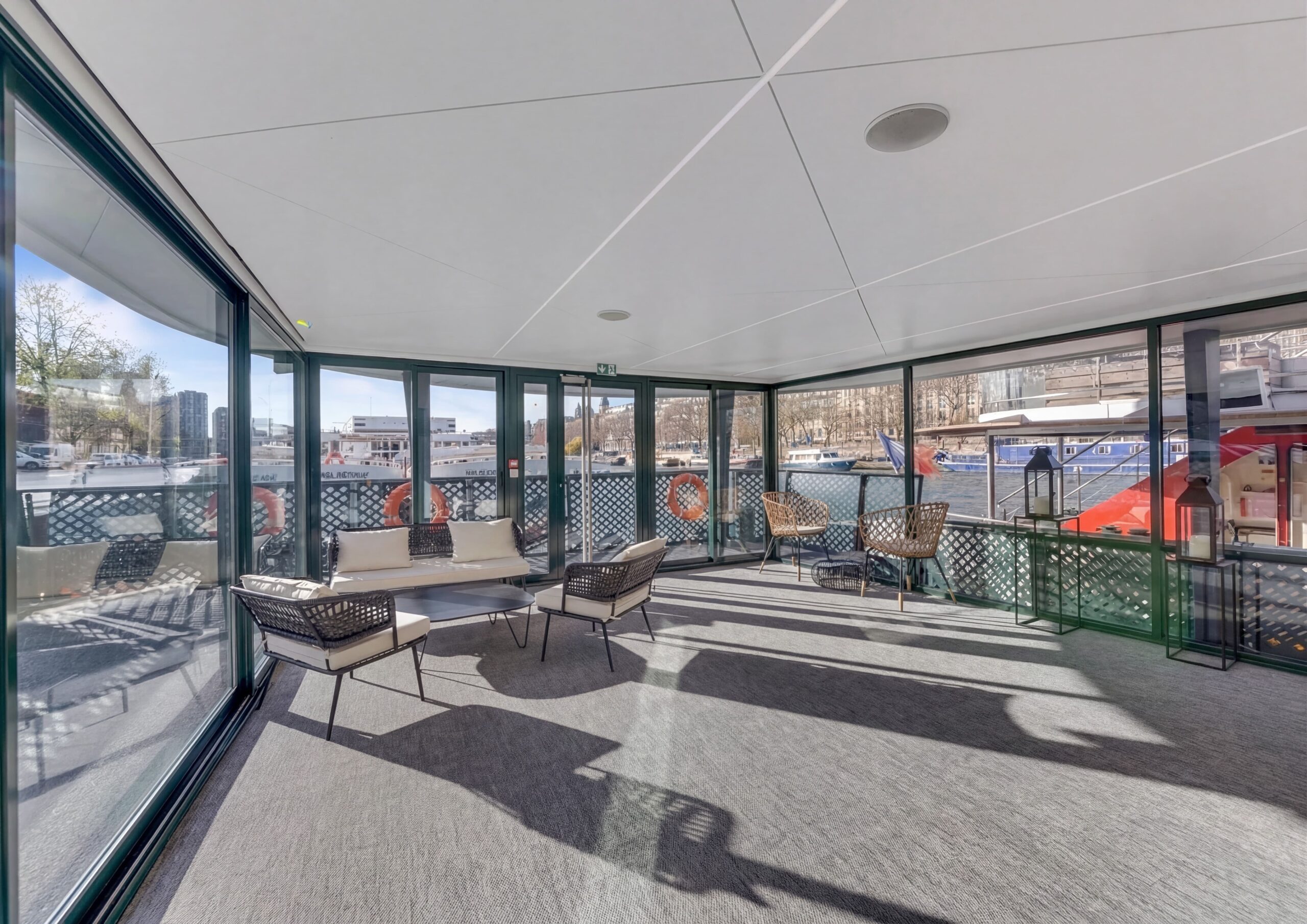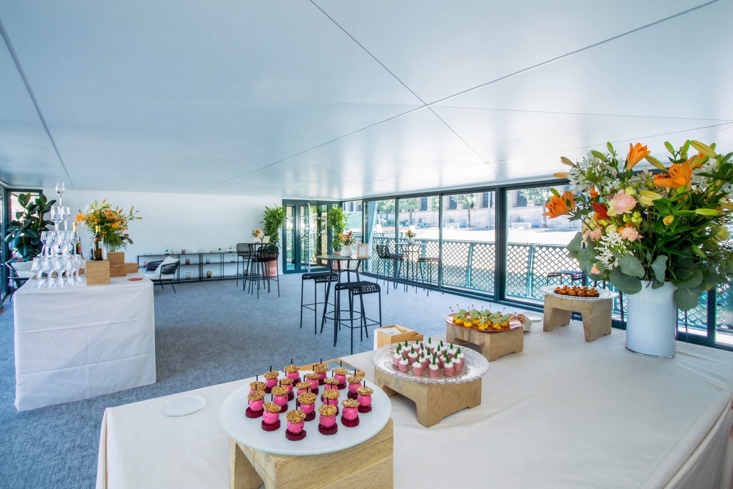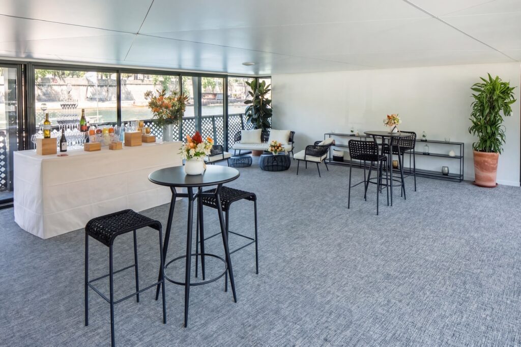 Véritable cœur de la péniche, le Grand Salon impressionne par ses volumes et sa luminosité. Modulable en cocktail, conférence ou banquet, il est l’espace idéal pour vos grandes réceptions et réunions de prestige.